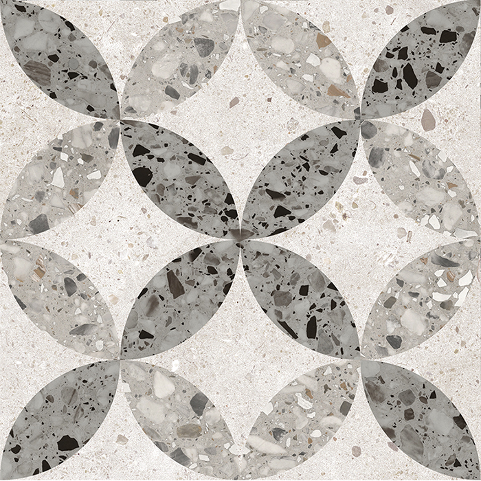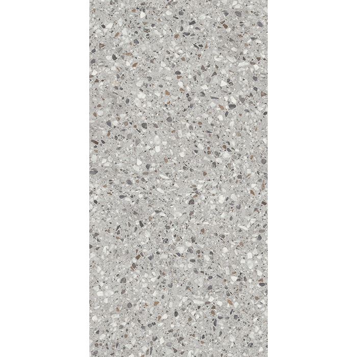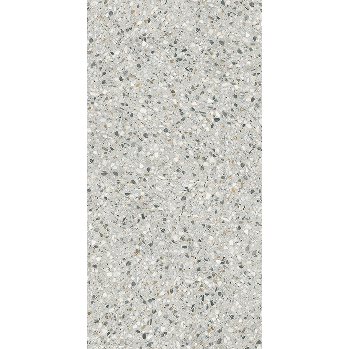 該產品擁有600X1200、600X600規格磚體,擁有90度亮面,顏色有米白、淺灰綠、暖灰、深灰4色;800X800擁有90度亮面和亞光防滑面(R10級),淺灰綠色;900X1800規格磚體,90度亮面,暖灰色;該系列產品美觀大方,有別于純粹的黑白灰,自帶一種復古與工業感的魅力;產品表面星星點點的紋理,疏密有度,層次自然,營造了自然質樸、自在隨意的家居氛圍,也給與了空間無限的時尚感。